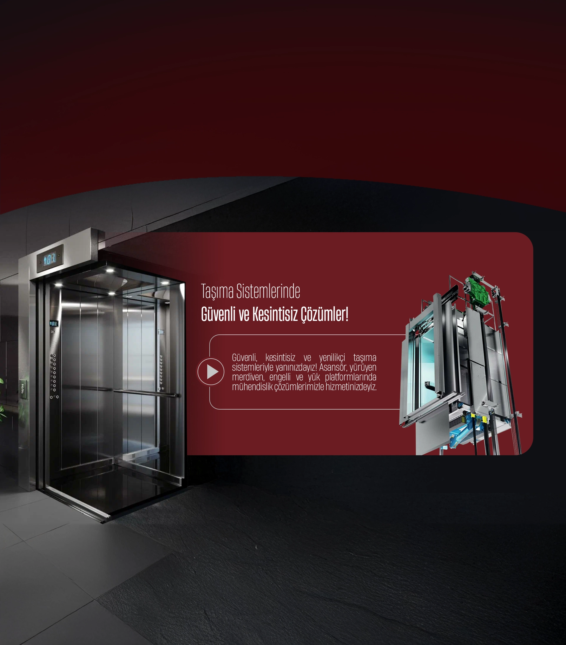Uzun yıllar boyunca, kullanıcılarına güvenli ve kesintisiz hizmet vermesi beklenen asansör, yürüyen merdiven & yol, engelli & yük platformu sistemleri gibi önemli ve kritik bir mühendislik disiplini olan taşıma sistemlerinde, çözüm ortağı olarak firmamızın sizlere de hizmet vermek istediğini belirtiriz.